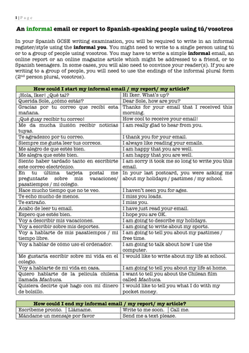 Gcse Spanish Writing How To Write An Email Or Article Using Usted Versus Tu Teaching Resources